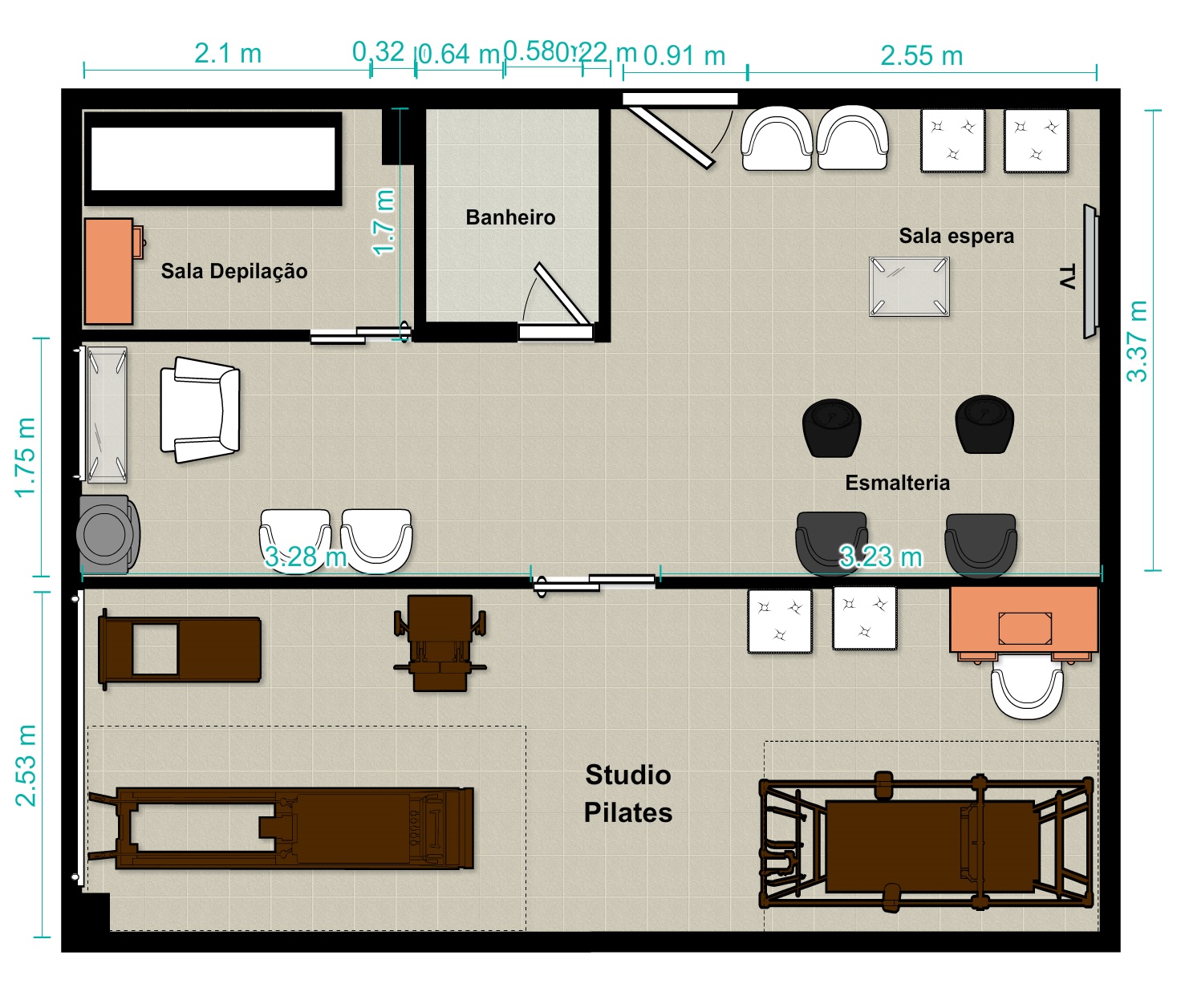 Se você nunca viu um layout pronto de um studio de pilates, trouxemos alguns que fizemos aqui na Kauffer para você conferir: